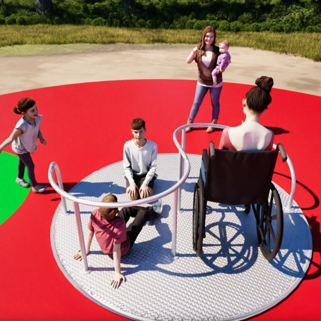Diese Art von Karussell ermöglicht es Kindern, Jugendlichen und Erwachsenen mit und ohne Behinderung, gemeinsam zu spielen und Spaß zu haben, wodurch soziale Interaktion und das Verständnis für Inklusion schon von klein auf gefördert werden.
