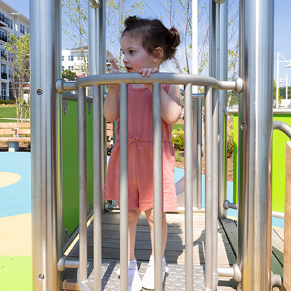 - separate play areas for younger children with lower platforms and more easily accessible elements