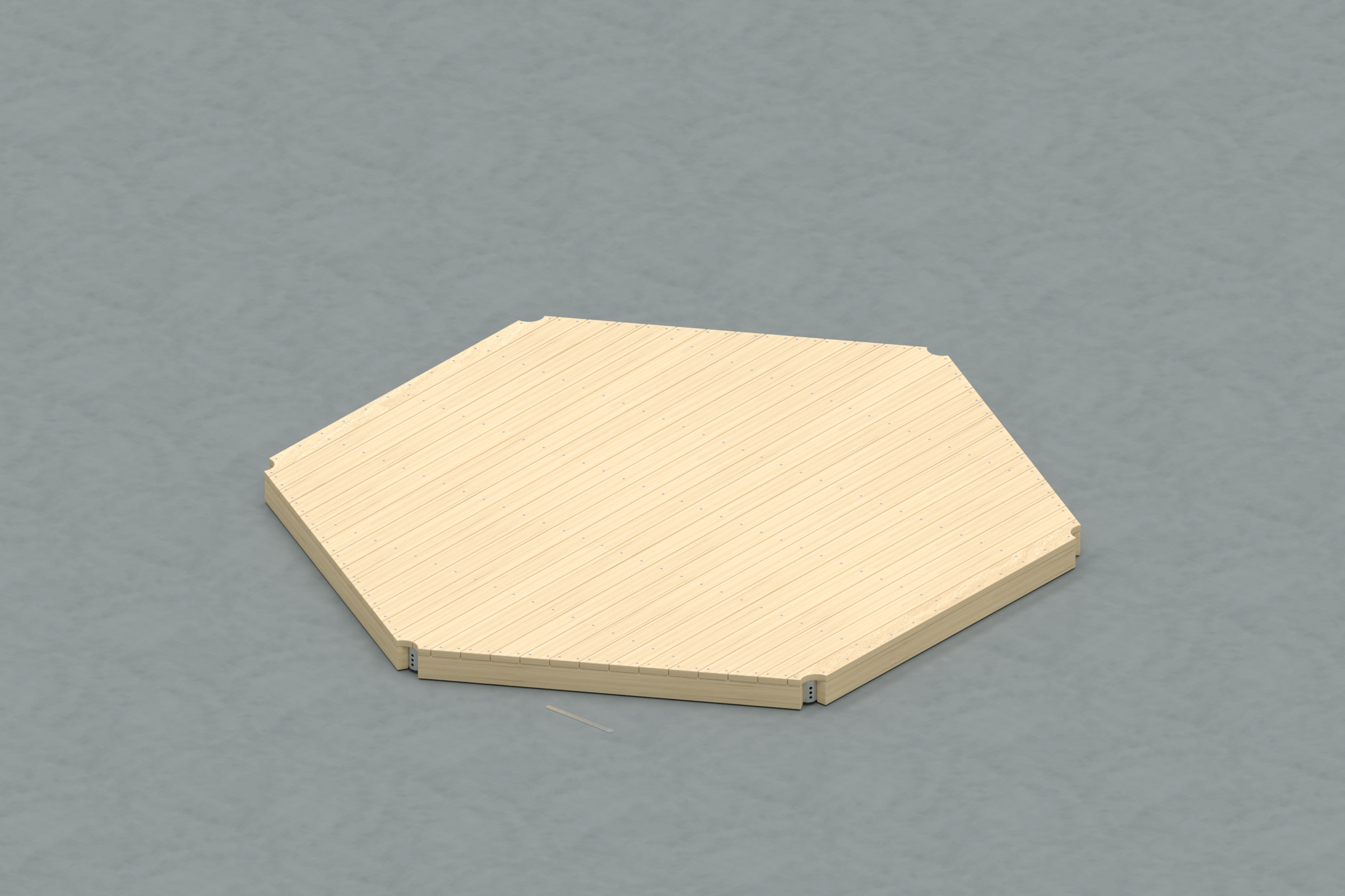Art.: 1200006 | Podestboden aus Brettern, 30 mm dick und umlaufenden Kantholzunterzügen 45 x 100 mm. Die getrockneten Schnitthölzer aus Robinie sind gehobelt, gefast und frei von Faulästen. Kraftschlüssige Bodenbefestigung durch spezielle Edelstahlwinkel und einer durchgehenden Bolzenverschraubung.
