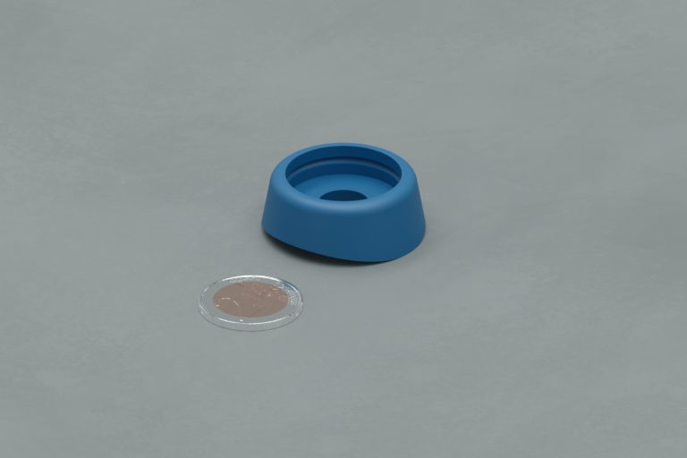 Art.: 1060556 | Schaukelkorb mit Rundum-Dämpfung aus PUR Schaum und PE-Seilummantelung blau Ø 20 mm; Korbring Ø 0,95 m aus Edelstahlrohr Ø 38 mm, Wandstärke 2 mm; Korb aus Kunststoffgliedern blau-schwarz, verbunden mit Stahlseil. Die TÜV-geprüfte, maximale Beschleunigung beträgt 50g. Der Grenzwert liegt lt. DIN EN 1176-2 bei 120g. Der Flächenpressung beträgt nach TÜV Prüfung 79,6 N/cm², der Grenzwert liegt bei 90N/cm². Mit Klemmadapter aus Edelstahl für Ketten Ø 7mm.