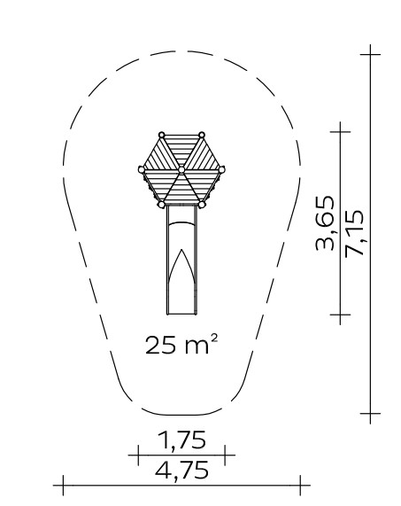 Mindestraum: 4,75 x 7,15 m (25 m²)