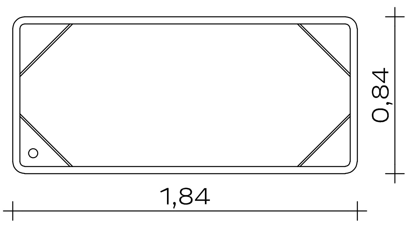 Grundfläche: 0,84 x 1,84 m