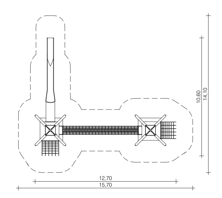 – Verbindung der Türme durch Stegbrücke, Länge 7,00 m, auf Podesthöhe 1,00 m