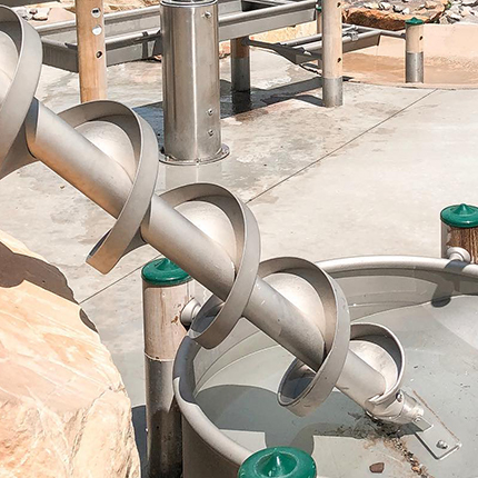 Ein neuer Trend unter den Wasserspielplätzen ist, den Außenbereich als interaktives Wasserlabor zu konzipieren. In Anlehnung an die spielerischen Wassersysteme, die in vielen modernen Kindermuseen zu finden sind, funktionieren diese Wasserspielplätze als miteinander verbundene hydrologische Netzwerke. Für Kinder, deren Leben immer stärker gelenkt wird, ist die Möglichkeit, selbst zu bestimmen, wo, wann und wie sich das Wasser bewegt, eine befreiende Abkehr von der Norm. Und es befriedigt einen biologischen Drang. „Der Mensch ist dazu verdrahtet, seine Umgebung zu manipulieren“, erklärt Morgan Selph, ein Landschaftsarchitekt bei PlaySpace Designs. „Es ist dasselbe, wie wenn Kinder an den Strand gehen, nur ohne den Strand und den Sand. Kinder können ihre Umgebung kontrollieren und organisieren. Das wird nie langweilig.“