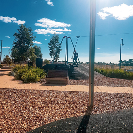Der Stadtpark ist das Herz und der Treffpunkt von Playford Alive. Im Stadtzentrum gelegen, befindet er sich in der Nähe von Gemeinde-, Einzelhandels- und Bildungseinrichtungen. Der Park ist ein Ort, an dem Familien und Freunde zusammenkommen und ihre Kultur feiern können – ein Raum, in dem sich Menschen aller Hintergründe und Altersgruppen treffen und miteinander in Verbindung treten. Wir freuen uns, Teil dieser schönen Gegend zu sein, und wünschen allen Familien viel Spaß mit unseren Kaiser & Kühne Wasserspielgeräten, der Seilbahn und den Schaukeln.